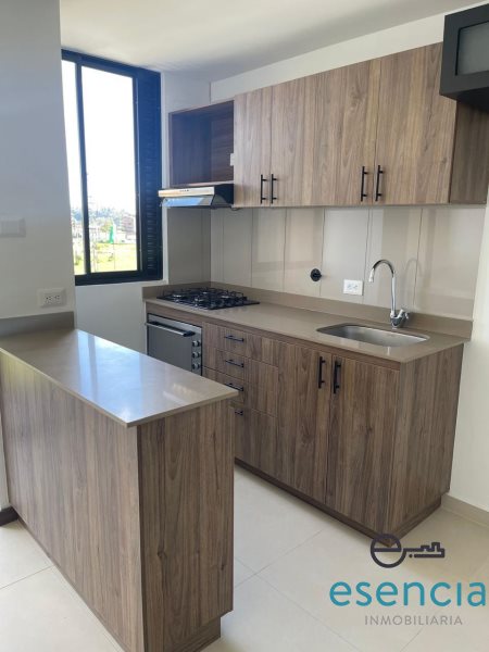 2 Alcobas ( Habitacion ppal con closet y baño) 1 Baño Social, Balcón Vista Panorámica, Salón Comedor, Cocina Integral Abierta con Barra, Zona de Ropas, Red de Gas y Calentador.